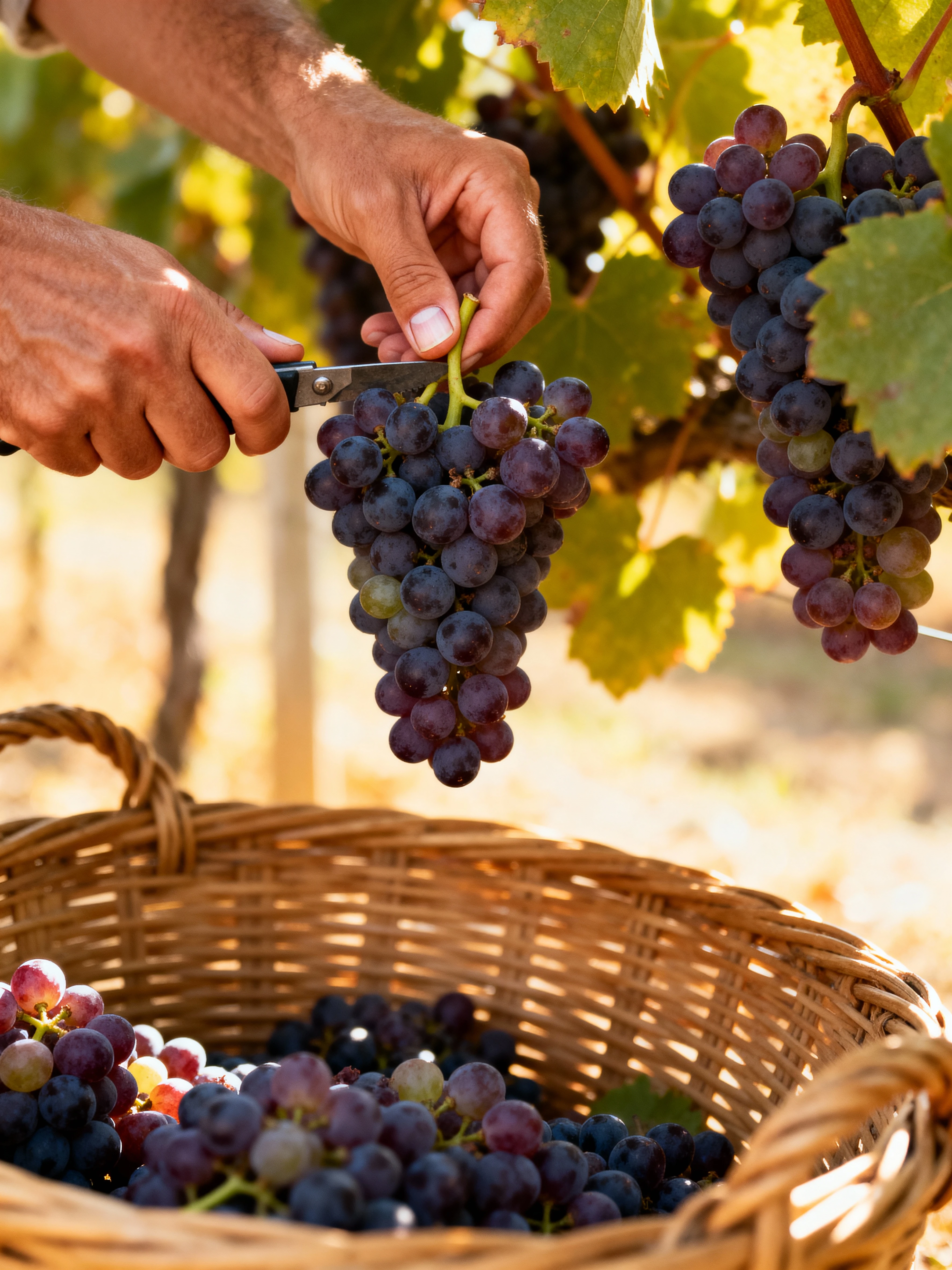 Harvesting is a short but special period when the grapes reach ideal ripeness and sweetness. It begins in mid-October. During these weeks, farmers carefully handpick only the best bunches so that only grapes of flawless quality enter production.
